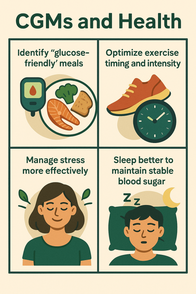 These small, wearable devices automatically measure glucose levels every few minutes, offering a complete picture of how diet, exercise, stress, and sleep impact blood sugar in real-time.